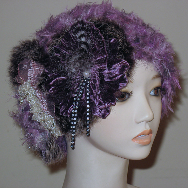 オブジェ部分は、ラビットのファーリボンを縫い付けゴージャスに