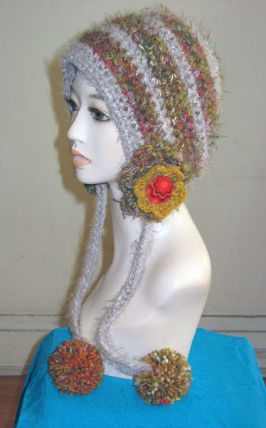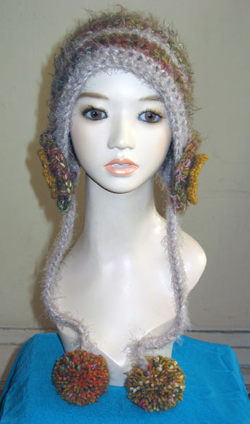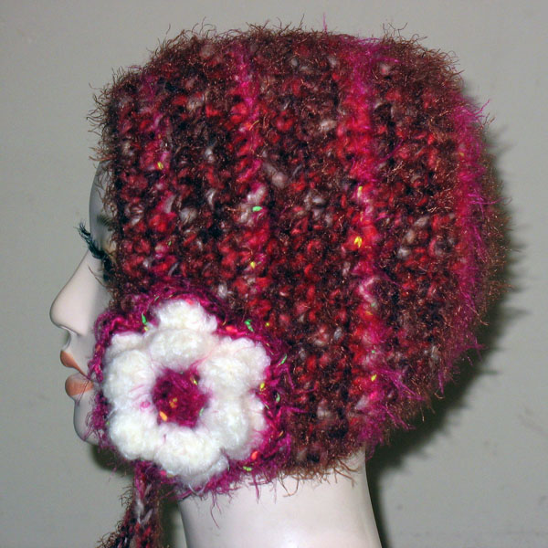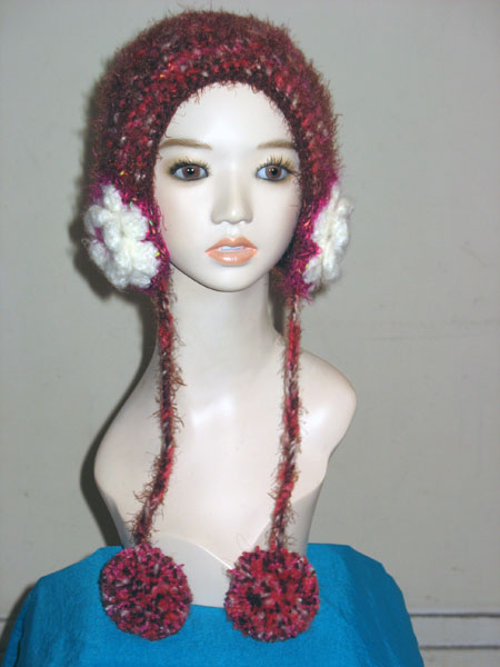フード帽子3は、赤ピンク系のミックス