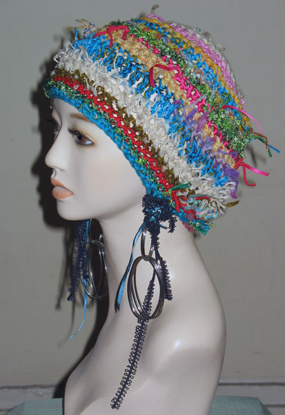 ボーダー帽子にイヤリングとリボンを付けたのだ リバーシブルです