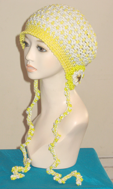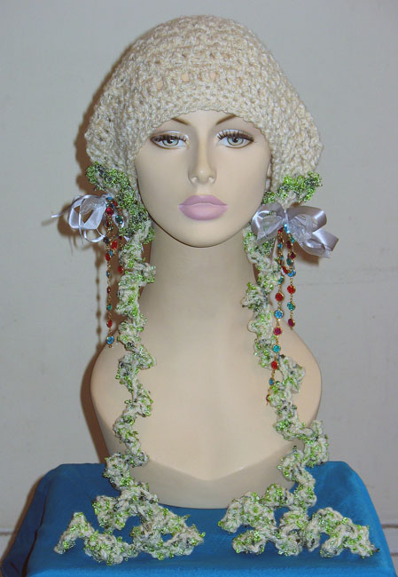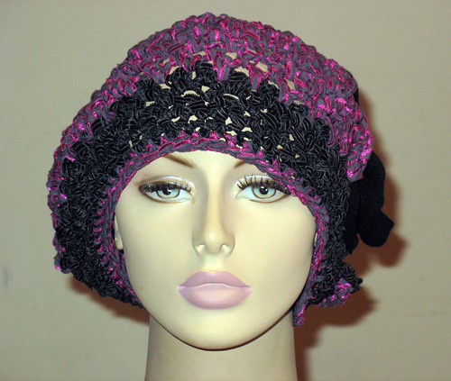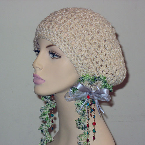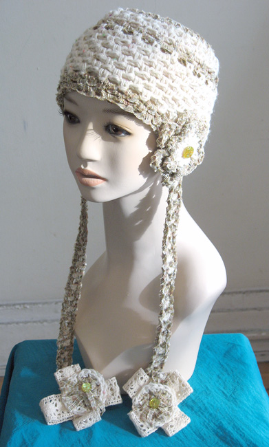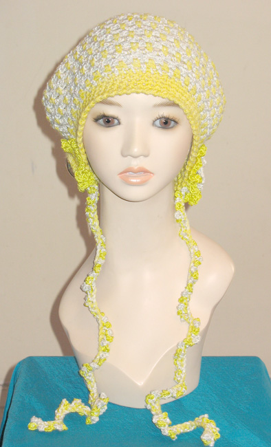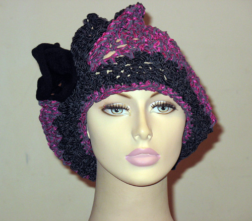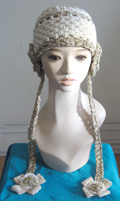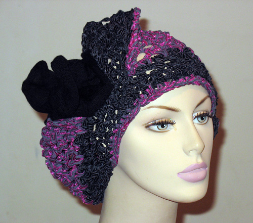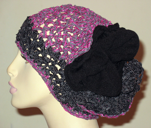 リボンヤーンと薄手のジャージ生地を使い、ベレーちっくな形なのさ