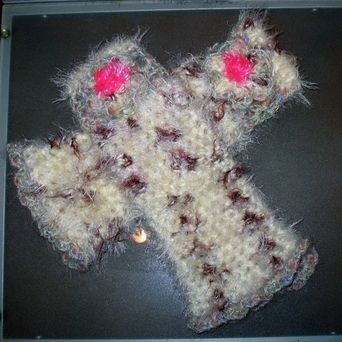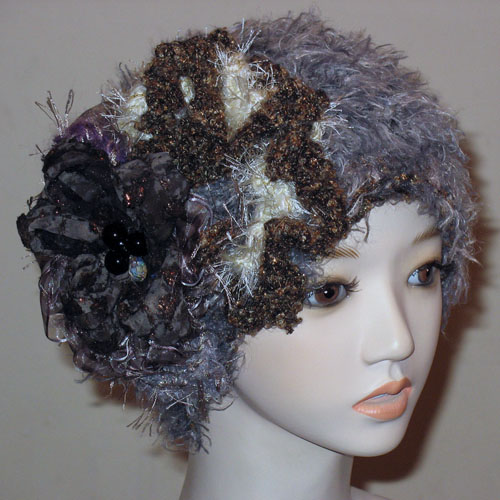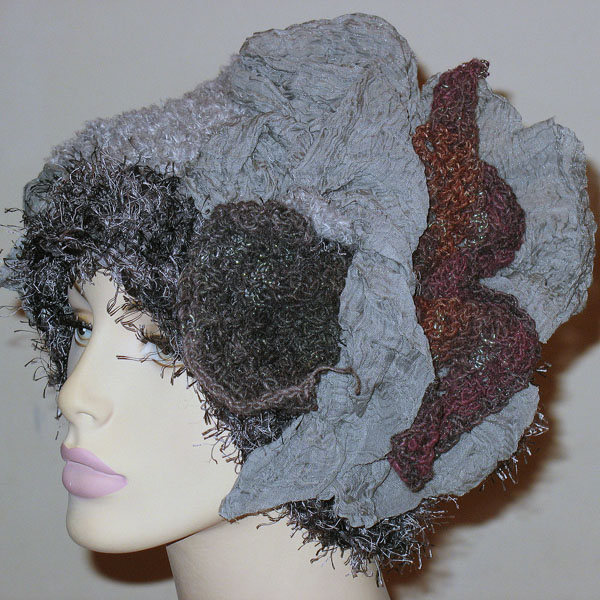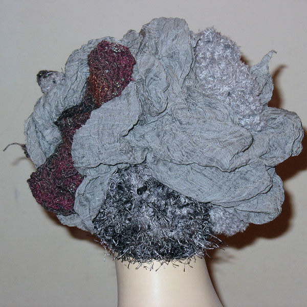 ふわふわグレーのショートアイラッシュや野呂糸に、しわしわ加工のグレーの布とのコラボ