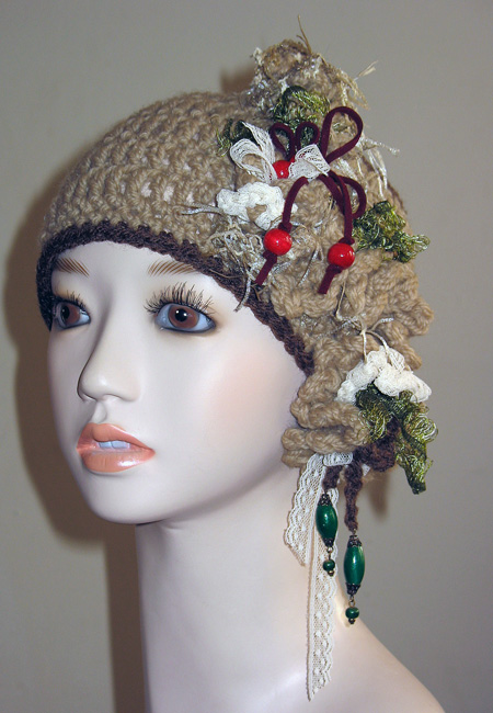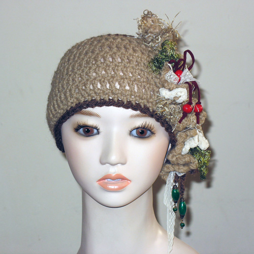 オーダーの仕上げに,途中過程にある帽子の仕上げ