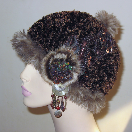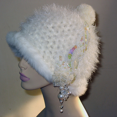 コサージュは取り外せまして,小さいミンクのボンボンを2つポイントに付けてんの