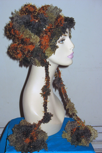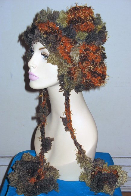トップにボンボリ付き,お下げ付きの帽子も作る予定
