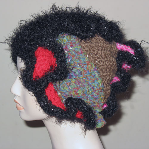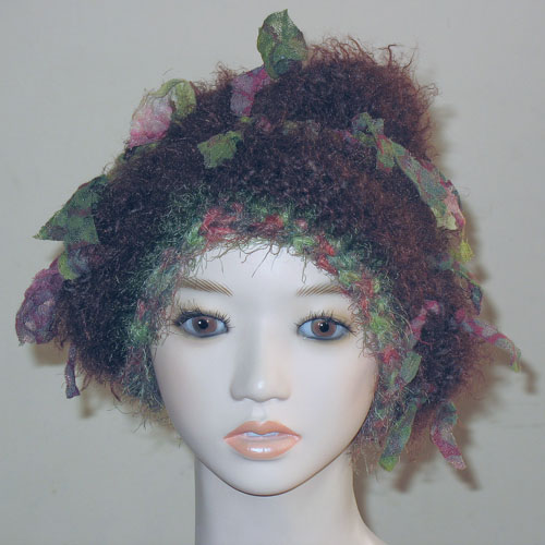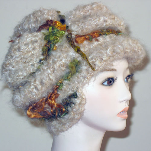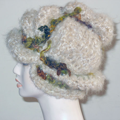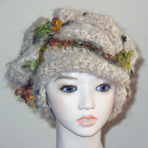 オーザックの糸とオフホワイトにベージュのほわほわ糸を使いデコボコ帽子