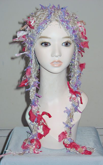 イタリー製のコットン/ポリエスタル混合糸に、着物の絞りが入った帯上げを思いきって切り裂き、アミアミしちゃっただ!