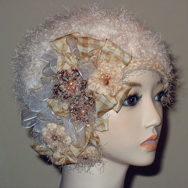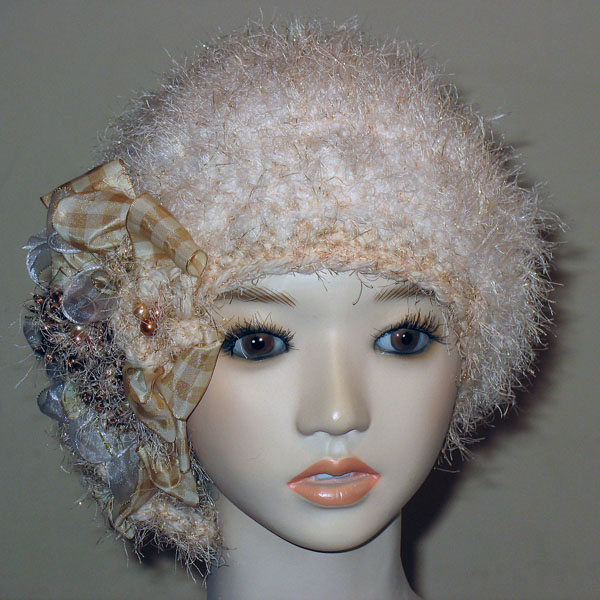 うすーいオレンジベージュなキラキラ糸と白の糸2本で編んでいるんですがねえ